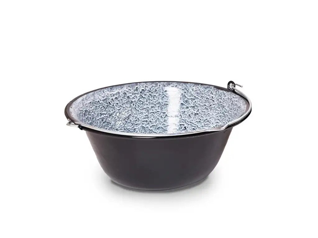 Smaltovaný kotol na guláš. Vysoká kvalita s objemom 22 litrov. Je hrubší ako bežne dostupné kotlíky, čo zabezpečuje rovnomernejší prestup tepla a menšiu možnosť pripálenia pripravovaného pokrmu.